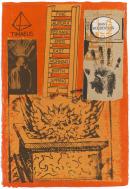 colour photo-screenprint and collage of cut and torn printed paper on orange handmade Japanese unryushi paper