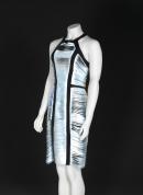 label, centre back, woven in black on white polyester: DION LEE