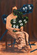 contrast eyes (animal components) heads (representations) seated figures stylisation women (female humans)