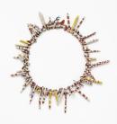 earth pigments and synthetic polymer paint on wood, gumnuts, seeds and seed pods, wool