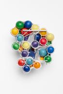 resin and plastic on enamel paint on wood, stainless steel