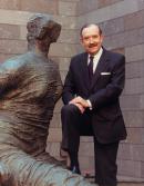 typed on paper label on reverse c.: PORTRAIT PHOTOGRAPH BY ATHOL SHMITH - 7 AUGUST 1989 / OF SIR ANDREW GRIMWADE, C.B.E. / PRESIDENT OF COUNCIL ON TRUSTEES FROM 1976 / AND TRUSTEE OF NATIONAL GALLERY OF VICTORIA FROM 1964 / MEMBER OF FELTON BEQUESTS' COMITTEE FROM 1973