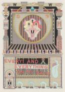 coloured fibre-tipped pens, metallic paint and collage on paper
