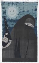 costume (mode of fashion) firearms layers (components) smiling sunbursts veils (headcloths) women (female humans)