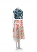 polyester (chiffon), plastic (buttons), metal (fastenings), cotton (tape)