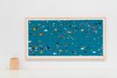 wood, felt, elastic, high density foam board, decal lettering, fabric labels, pins