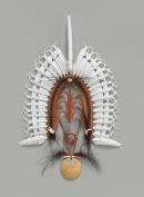 sea bird and cassowary feathers, pearl shell, cane, natural twine and pigments, bone, cowrie shell (fam. Cypraeidae), shells