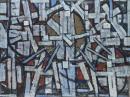 circles (plane figures) colours (hues or tints) crosses (motifs) lines (artistic concept) rectangles shape (form attribute) square (shape)