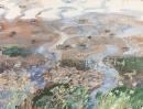 watercolour over pencil, charcoal, coloured chalk and masking out