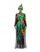 nylon, cotton, plastic, glass beads (seed and bugle), diamantés, rhinestones, wool, felt, polyester, styrofoam, netted tulle