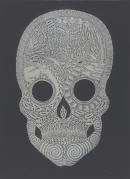 linocut printed in silver ink on black paper