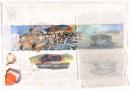 watercolour, pencil, fibre-tipped pen on paper with pencil on tracing paper overlay