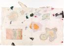 watercolour, synthetic polymer paint, colour etching and collage of embedded torn printed paper on 2 sheets