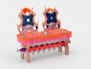 painted wood, plastic, metal, synthetic fur, anodised aluminium, vinyl, mirror, transparent synthetic polymer resin, metallic holographic film, (other materials)