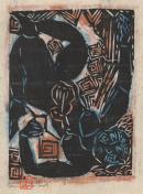 Munakata Shikō was the third of fifteen children born to an impoverished family in northern Japan. As a child, Munakata was known to paint directly onto the road with ink and an old brush. In the 1920s he went to Tokyo and discovered woodblock prints and their energetic mark-making possibilities, which suited his expressive temperament. Munakata was famous for making no preparatory drawings, directly painting, cutting and printing the block with great vigour and then often brushing watercolours onto the reverse side of the paper. This new style of raw and expressive imagery established him as one of the most well recognised and respected Japanese artists of the twentieth century. He was awarded the Order of Culture, the highest honour in the arts, by the Japanese government in 1970.