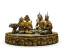 cotton, kapok (padding), rattan, wire, iron, metallic thread, gelatin (sequins), glass (beads)