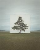 The trees in these photographs have been isolated from their environment by artfully placed backdrops of pristine white canvas. Lee’s interventions into the landscape highlight the unique form of each of the trees; the limbs and foliage are shown in crisp detail, and appear to have been flattened out, reduced to elegant graphic elements floating in space. The setting in which each tree grows can be seen extending beyond Lee’s blank backdrops. Each plant is shown paradoxically as both isolated from its context, and situated within its habitat.