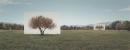 The trees in these photographs have been isolated from their environment by artfully placed backdrops of pristine white canvas. Lee’s interventions into the landscape highlight the unique form of each of the trees; the limbs and foliage are shown in crisp detail, and appear to have been flattened out, reduced to elegant graphic elements floating in space. The setting in which each tree grows can be seen extending beyond Lee’s blank backdrops. Each plant is shown paradoxically as both isolated from its context, and situated within its habitat.