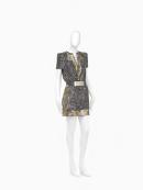 82.5 cm (centre back) 38.0 cm (waist, flat) (dress) 5.5 × 83.5 cm (belt)