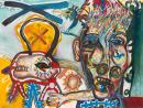 synthetic polymer paint, brush and ink, oil stick, coloured pencils, chalk and charcoal on 2 sheets