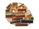 maple, wood, stained and veneered wood, laminate, opaque synthetic polymer resin, cardboard, powder-coated steel, cane, glass, brass, plastic, jute and metal
