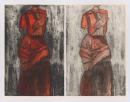 cardboard intaglio, jig-sawn block printed in red ink and ghost printing of plates on 2 sheets