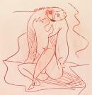 drypoint printed in red ink on chine collé, collage of red paper