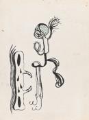black fibre-tipped pen (brush marker) and green pencil
