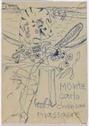 inscribed in blue ballpoint pen (in image) l.c.-l.r.: Monty / Carlo / chainsaw / massacre