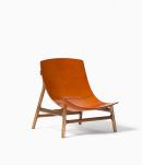 Designer and maker Jon Goulder’s Settler’s chair draws inspiration from the ingenuity of European settlers in Tasmania in the early 1800s, whose resourceful use of local materials led to furniture that was a departure from the Victorian-era goods imported from England at the time. Emerging from investigation into such furniture, Goulder developed an original process for water forming, laminating and vacuum pressing large pieces of cow leather. Requiring no inner shell, this process delivered the self-supporting form for the leather seat in his Settler’s chair, and the design marks a change in the designer’s typical style, closer to mid-century modernism.