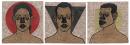 These works from Ephrem Solomon’s Signature series show the artist’s bold graphic style and unusual medium, which combines hand-carved wood panels, collaged printed text and hand-colouring. Solomon’s images are inspired by the residents of his hometown Addis Ababa, where a large part of the population lives in difficult circumstances, with very few social, political or economic opportunities. As Solomon states, ‘My works portrays the distance between what the governed people need and want, and what the response is from the governors. I have tried to picture, as precisely as possible, the actual and innocent feeling of the governed’