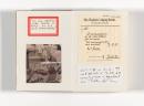 concertina book: 24 double-sided pages, fabric and cardboard cover: collage of cut and torn colour and black and white printed illustrations, pen and ink, pencil and coloured pencil, gold foil, cut newspaper, printed sticker, ballpoint pen, synthetic polymer paint, gold-flecked wrapping paper, postage stamps, stamped red ink, glitter paint, photograph and photocopy transfer
