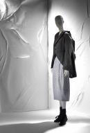 (b) label, centre back neckline, printed in ink on white synthetic fabric: COMME des GARCONS