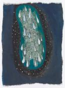 watercolour, gouache, brush and ink and scratching back on oatmeal paper