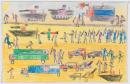 coloured pencil and red and blue fibre-tipped pen