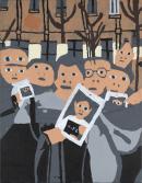 buildings (structures) children (people by age group) men (male humans) spectacles (eyeglasses) women (female humans)