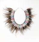 aluminium, cassowary feathers, seeds, synthetic thread, steel