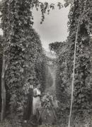 typewritten inscription (inverted) on reverse l.c.r.: Caption: Hop pickers at Rostrevor hop garden in / Victoria's picturesque Ovens Valley. / Title photo, lefthand pages for Chapt. 16: THE GARDEN OF EDEN