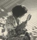 Olive Cotton created this image while assisting her colleague and then partner Max Dupain on location at beaches around Sydney. According to Cotton, when Dupain was shooting fashion photographs, she had the freedom to create her own images while the model was ‘waiting her turn to be photographed by Max’. Dupain’s camera tripod cast ‘long slanting lines of shadow’ against the sand. While its creation was incidental, this photograph demonstrates Cotton’s eye for composition and her mastery of light and shade, emphasising the graphic elements of the scene.