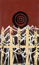 synthetic polymer paint, bitumen and enamel paint on canvas