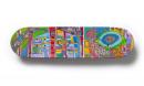 synthetic polymer paint and fibre-tipped pen on skateboard
