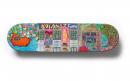 synthetic polymer paint and fibre-tipped pen on skateboard