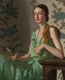 Modernist painter Constance Stokes was trained at the National Gallery of Victoria Art School, and in 1929 won a scholarship to continue her study at London’s Royal Academy of Arts. The subject of this painting is unconfirmed; however, it is speculated that the work may depict the donor’s mother, Dorothy Ellen Niall. The textile used as a backdrop is by Michael O’Connell and is also visible in a still life by the artist, Marguerites and cornflowers,1930, which was exhibited in the Exhibition of Paintings by Constance Parkin in 1933.