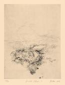 etching, deep etching, resist and plate-tone printed on buff paper from two plates
