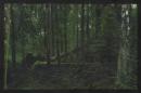 Grant Nimmo’s forest landscapes have a storybook-like quality, portraying the beauty of nature while suggesting darker forces. The pack of strange dogs depicts a pine forest scene, framed by a dark painted border that recalls the Romantic painting tradition of the late eighteenth and nineteenth centuries. Nimmo produced this work after a visit to the Scottish Highlands; the painting is a response to the atmosphere he experienced there. The title references a line from a Scottish folk song that describes, from a hare’s point of view, the thrill of being chased through the landscape by hunting dogs.