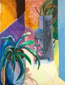 inscribed in black chalk on reverse u.r.: Piano + / Pot Plant / (Interior) / 2017 (17 underlined)
