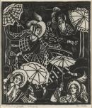 inscribed in pencil l.l.: “Bonnets, shawls, gay parasols” artists proof