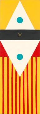 enamel paint, synthetic polymer paint and nylon raffia on plywood