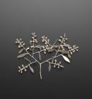 Marian Hosking uses drawing, fabrication and casting techniques to translate imagery from natural environments, particularly of native plants. Inspired by her experience of the inland coastal environments around Victoria and New South Wales, Hosking’s Crest brooch resembles a specimen of golden wattle. Rather than replicating the plant in a purely illustrative fashion, she has used silver to convey an emotional sensibility and deep connection to place, inviting the viewer to ascribe their own meaning to the work.