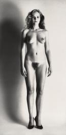 The unlikely inspiration for these images (police mugshots of the Baader-Meinhof gang) is at odds with the highly refined photographs that Newton created. Although they stare defiantly at the camera, Newton’s models appear not as radical criminals – when have they ever been photographed naked in high heels? – but as fetishised twentieth-century Amazons.